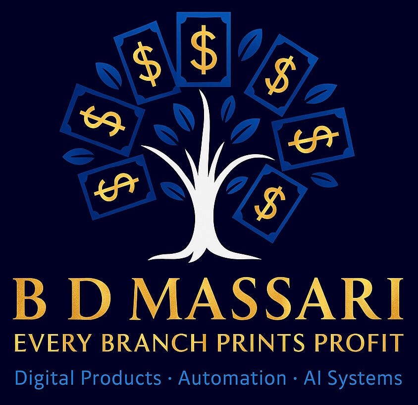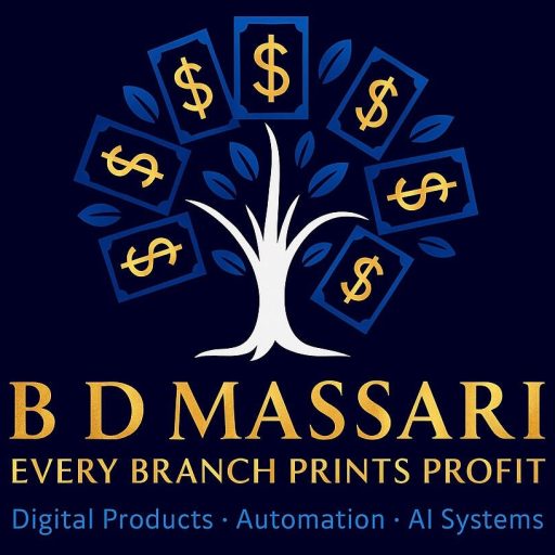 B D MASSARI helps creators, consultants, and digital entrepreneurs build automated income streams with AI systems, high-converting landing pages, sleek websites, and plug-and-play digital products. From branding to backend, we create premium systems that run 24/7 and work harder than you do.