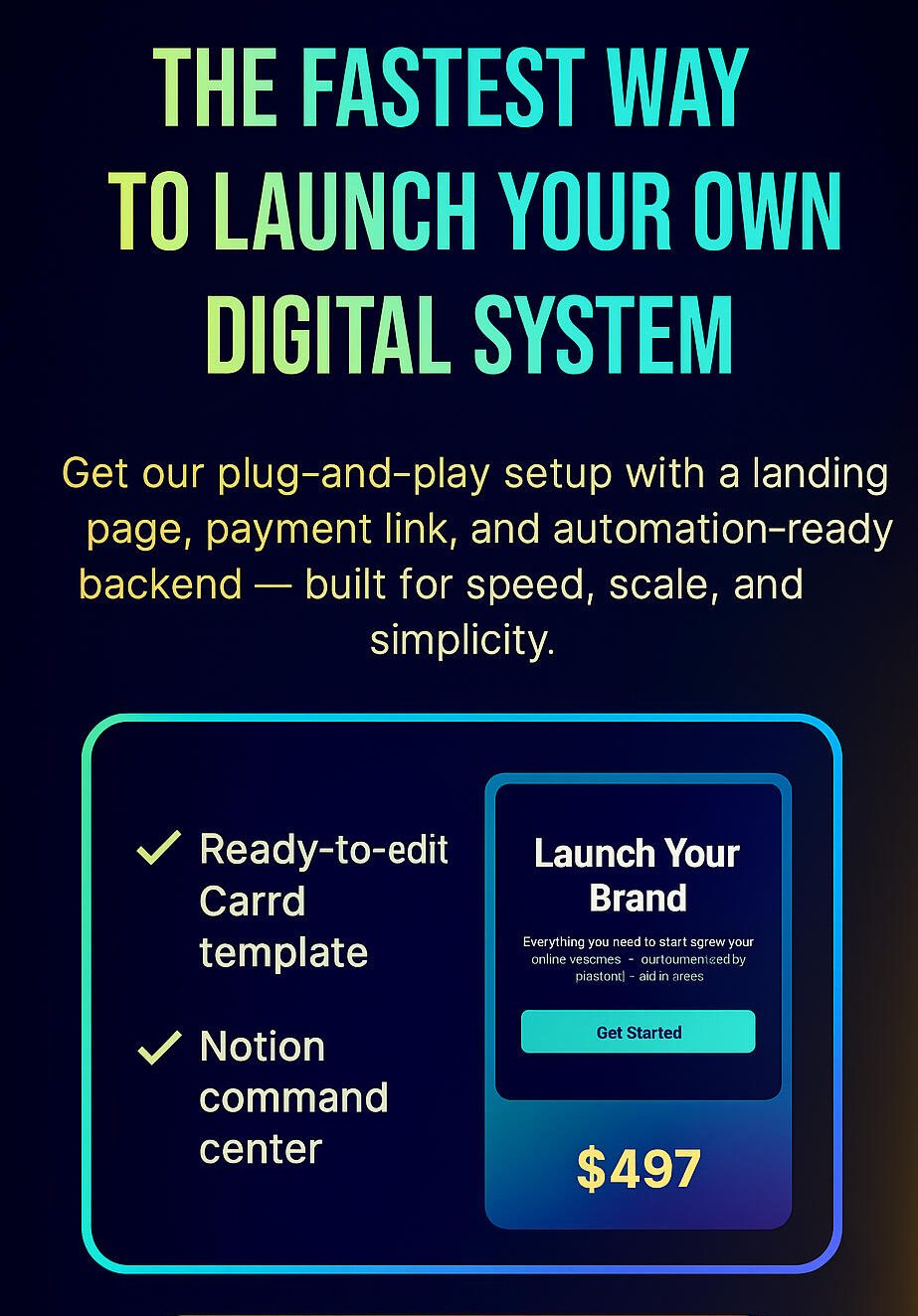 We craft plug-and-play systems that take the stress out of launching and scaling your business. From resellable AI tools to affiliate-ready funnels, sleek landing page kits, and automation consulting — every solution is designed to save you time, simplify the process, and help you generate income effortlessly, even while you sleep.